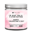 Rate your partner 5 stars with this cute Valentine's day candle.