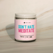 "Don't Hate, Meditate" candle, your one-way ticket to tranquility without the pretentious yoga poses! This coconut apricot wax blend is like the dynamic duo of waxes – smooth like a spa day, and sweet like a dessert binge after a breakup.