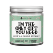 "I'm The Only Gift You Need" is more than just a candle; it's a hilarious and heartwarming Christmas gift idea. Whether placed on a cozy mantel or given as a secret Santa surprise, this candle encapsulates the true essence of holiday giving – a good laugh and a joyful aroma. Light up the holiday season with a touch of merriment and the sweet scent of peppermint, making it the perfect present for friends, family, or anyone in need of a jolly pick-me-up.