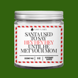 Meet "Santa Used To Say Hey Hey Hey Until He Met Your Mom"—the hilarious peppermint-scented candle that tells the story of Santa's jolly spirit... until your mom came along! With a cool and minty fresh scent, this candle is perfect for bringing humor and holiday vibes to any room. A funny twist on classic Christmas cheer, it’s the perfect way to keep things festive—and just a little bit spicy!