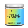 Introducing our Too Gay To Function candle, a splendid creation that pays tribute to the iconic line from Mean Girls. This exquisite candle beautifully encapsulates the vibrant spirit of the LGBTQ community, merging whimsy with a luxurious scent experience. Infused with notes that celebrate the sweetness of fruit, this 9oz candle promises to elevate your space with joy and sophistication.